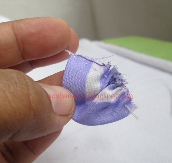 Mula mula buat bulatan pada perca kain. Makin besar makin besarlah bunga yg anda akan hasilkan. paling sikit 5 pcs... lagi lebih bermakna lagi kembangla.. tapi saya galakan antara 5 hingga 7 keping je sekuntum.